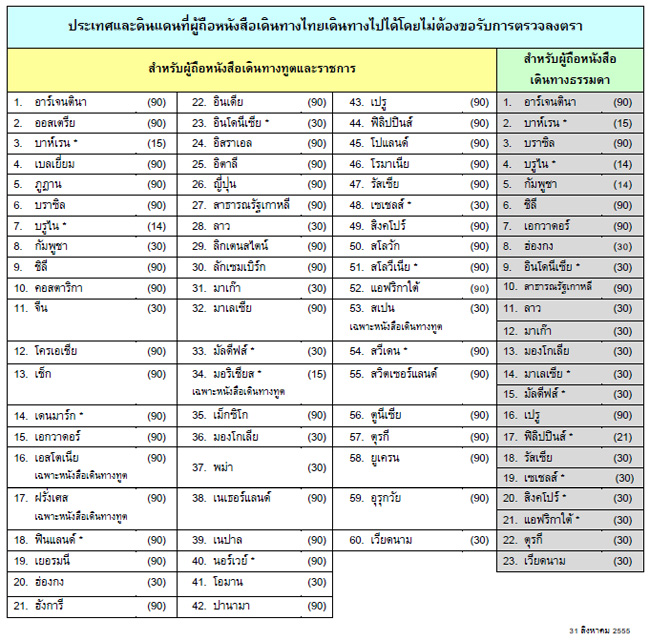 - รายชื่อประเทศที่ไม่ต้องขอวีซ่า